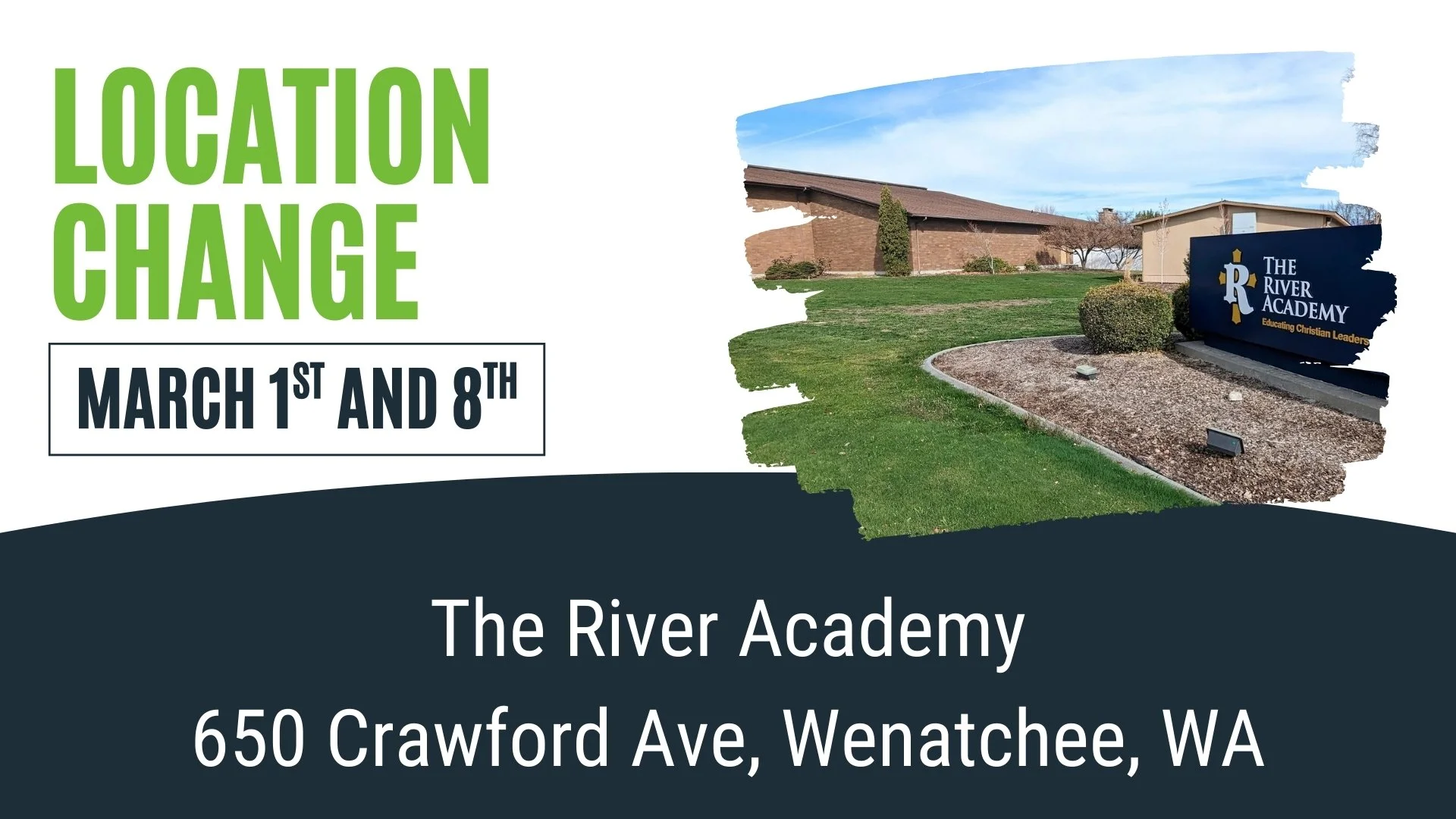 Both Sundays, March 1st and 8th, we will be meeting for service at The River Academy on Crawford Ave!